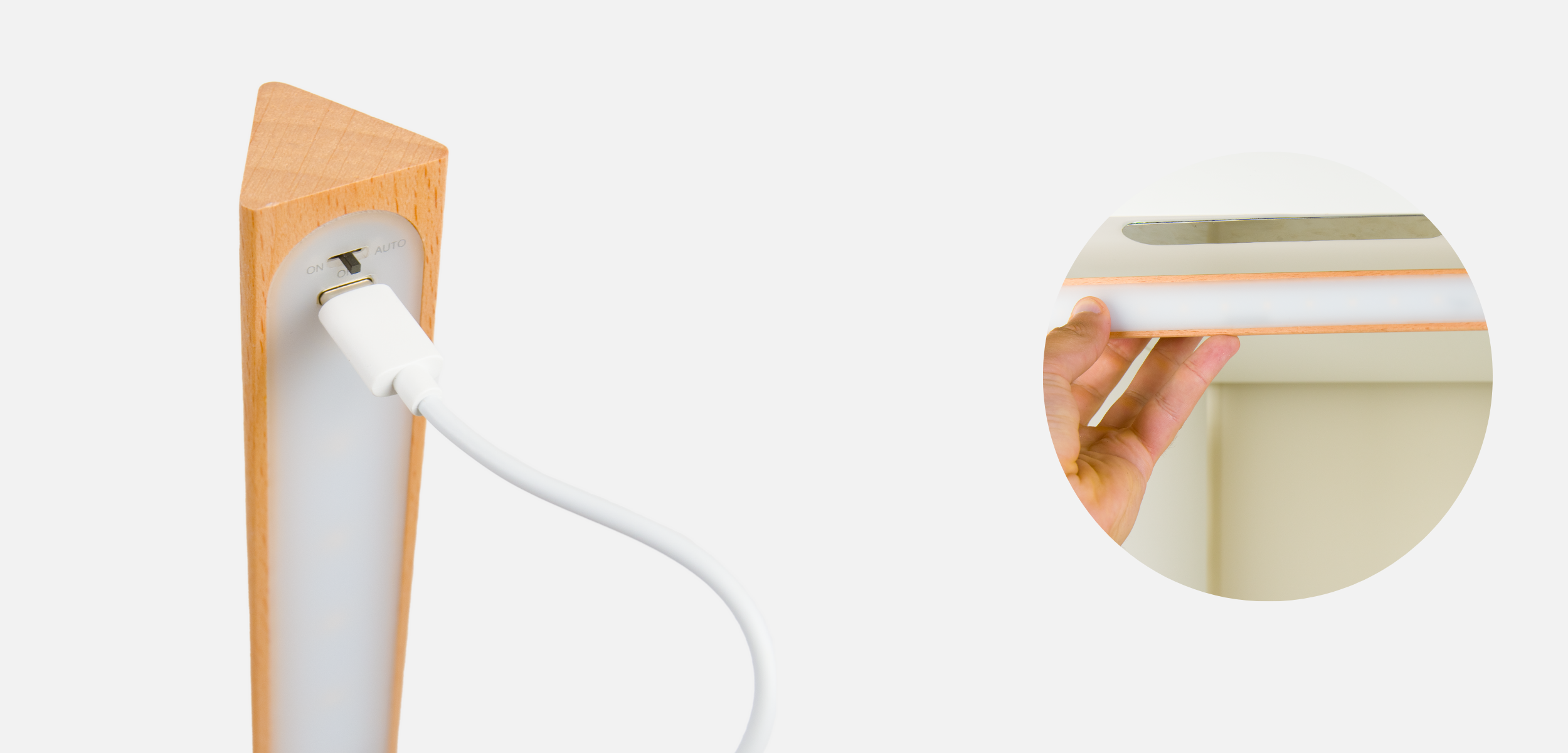Wire-free beech wood light: 165g, magnetic mount, 3000K auto-sensor